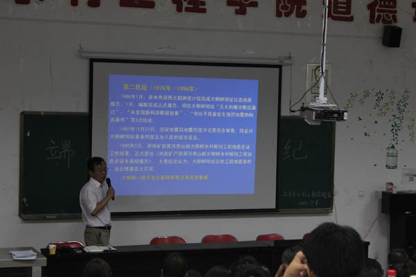 水利水电工程、农业水利工程专业的老师、博士生、硕士生及本科生做题为《黄河黑山峡河段开发及大柳树水利枢纽工程前期工作进展》的报告。