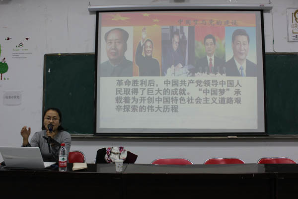 本次党课以“中国梦与党的建设”为主题,从“中国梦”的内涵、“中国梦”与党的建设关系、如何正确认识党的建设历程、当代大学生肩负的历史使命四个方面进行讲解。奥海玮老师把“中国梦”与“美国梦”进行对比,指出中国梦的基本内涵是实现国家富强、民族振兴、人民幸福,这是中华民族和平发展、合作共赢的梦。并得出“中国梦”才是真正希望人民过上幸福生活,体现了以人为本的政治思想。结合实例,在讲到党的建设历程时,她结合大量的实例和时事,列举了我党所经历的长期执政、市场经济、改革开放、外部环境的四大考验;精神懈怠、能力不足、脱离群众、消极腐败的四种危险;自我净化、自我完善、自我革新、自我提高的四项能力。最后希望广大学员:一要热爱国家,热爱人民,热爱党;二要具备扎实专业素质,提升全面综合能力;三要勇于实践,敢于创新,从小事做起,从脚踏实地做起。