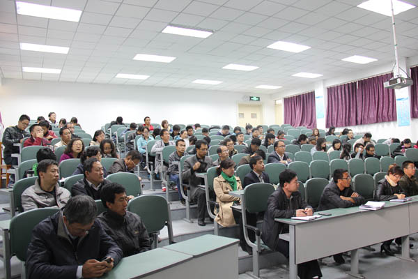 李斌教授从群众观点是马克思主义的基本观点、高校开展群众路线教育实践活动必须注意的几个问题和高校开展群众路线教育实践活动的路径选择三个方面展开论述。李教授的报告既有扎实的理论阐述,又有生动的事例举证,具有很强的针对性。