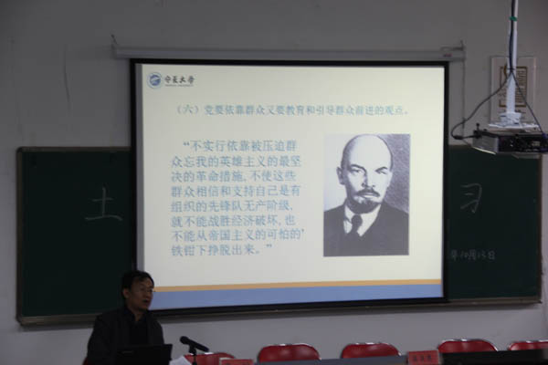 全体教师党员和部分学生党员代表做了主题为“坚持马克思主义群众观”的辅导报告。会议由党总支书记马正亮老师主持。