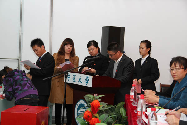大会以无记名投票的方式选举马正亮、田军仓、王德全、张强、崔自治、尹娟、李应海七位同志为学院第一届党委委员。大会在雄壮的《国际歌》声中顺利闭幕。