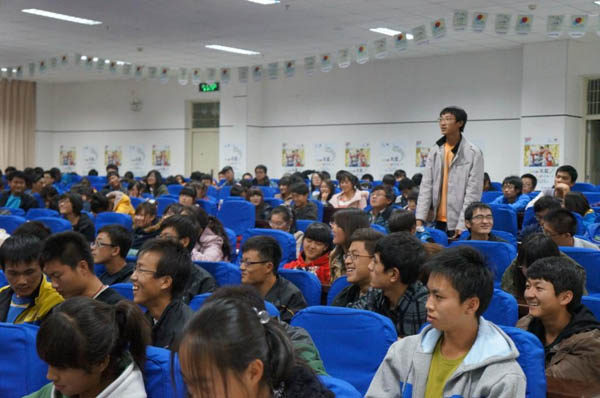 B区广场设计并获奖,2012年经过层层选拔,获重庆大学直博资格,这是他辛勤努力得到的回报。通过讲述自己的求学经历,引导学生在专业上树立吃苦耐劳、精益求精的优良品质。最后,学院2009级土木工程专业熊楚风同学讲述了自己在大学担任学生干部的经历,他把学生工作当作志愿服务的平台,扎根基层工作,认真履行职责,很好地处理了学习和工作的关系,成为学生和学院有效沟通地桥梁,2012年也获得保研资格,被重庆大学录取。通过自身成长经历的讲述,引导学生树立恪尽职守、敬业奉献的优良品质。