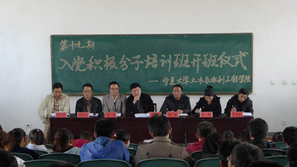 第十九期入党积极分子培训班开班仪式在工科楼三阶隆重举行。学院党总支书记马正亮,副书记张强,学办主任郭利及全体辅导员老师出席了本次开班仪式。仪式由辅导员马姣老师主持。