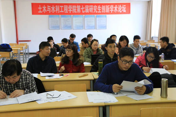 第七届“研究生创新学术论坛” 在C区工科楼和“L”楼举行。副校长田军仓,副院长毛明杰、崔自治、尹娟、各学科负责人、研究生导师及全体研究生参加了此次创新学术论坛。