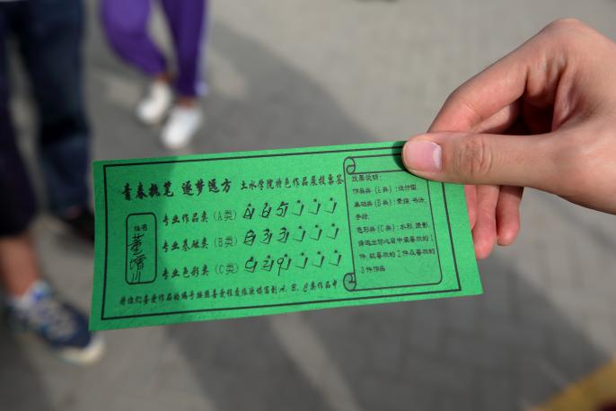 举办的“指尖圆梦,筑梦未来”优秀作品展览会,并亲自为作品进行评审打分。