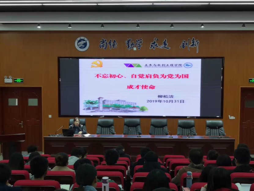 党委副书记柳松洁在知行楼三阶报告厅为学院学生党员做“不忘初心,自觉肩负为党为国成才使命”的专题党课。