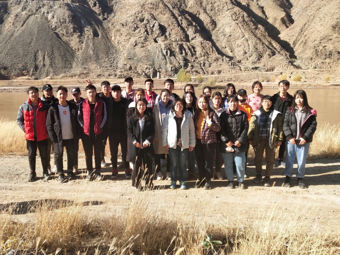 图3 2017级水利水电工程班中卫大柳树坝址处合影