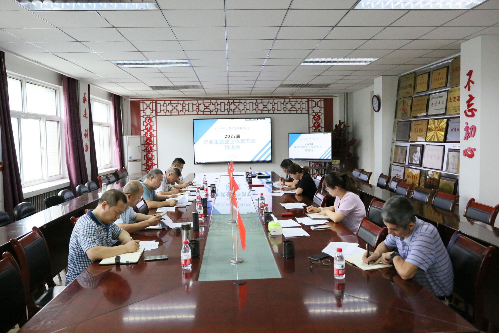 2022届毕业生就业工作第五次推进会在学院415会议室召开,召开此次推进会目的在于统一思想,整合力量,进一步夯实就业责任,全力推进就业工作。全体院领导、各系支部书记、系主任及学生工作办公室就业负责人员现场参会,未落实就业去向的研究生导师和本科生精准帮扶教师以线上方式参加。