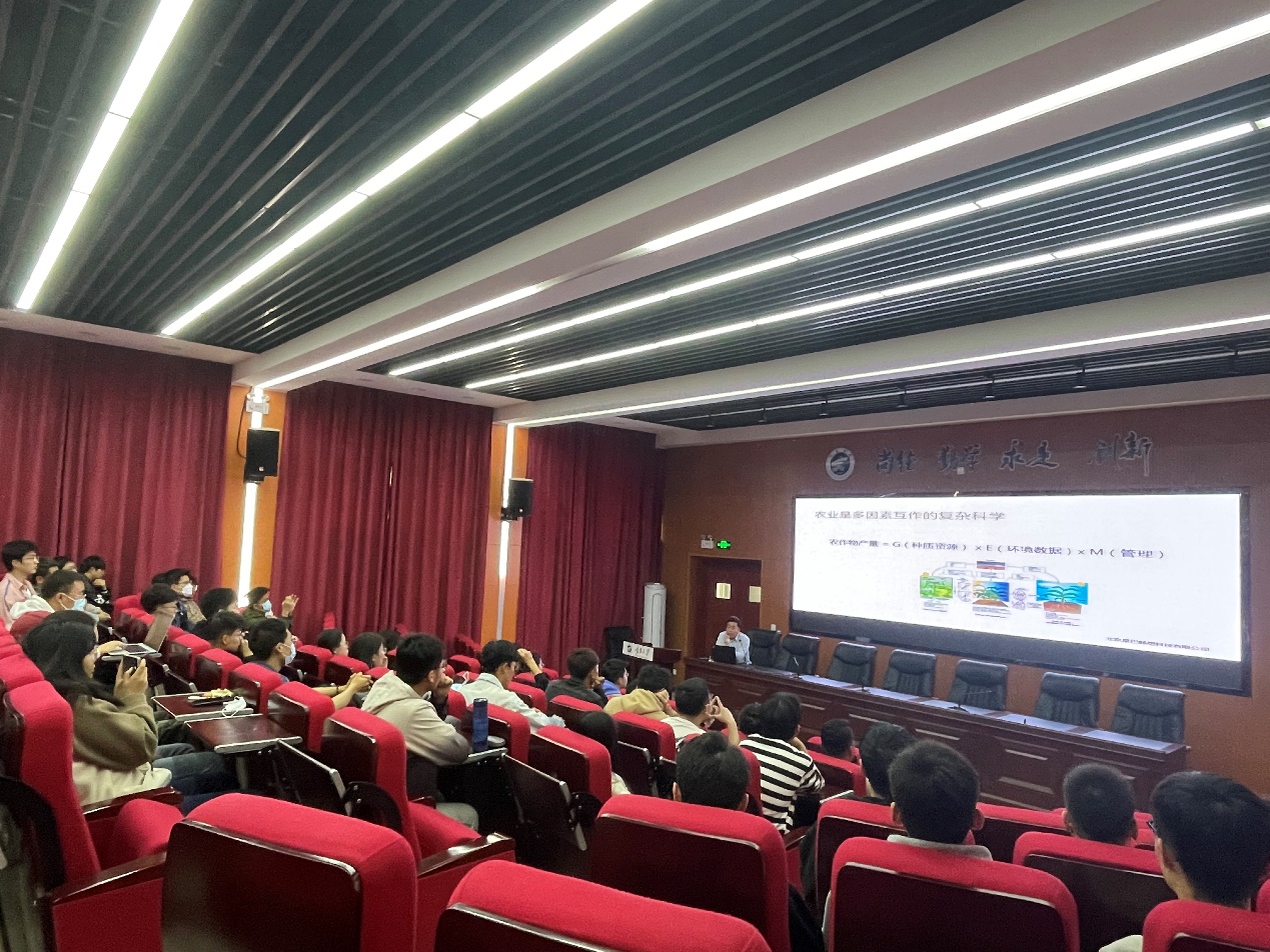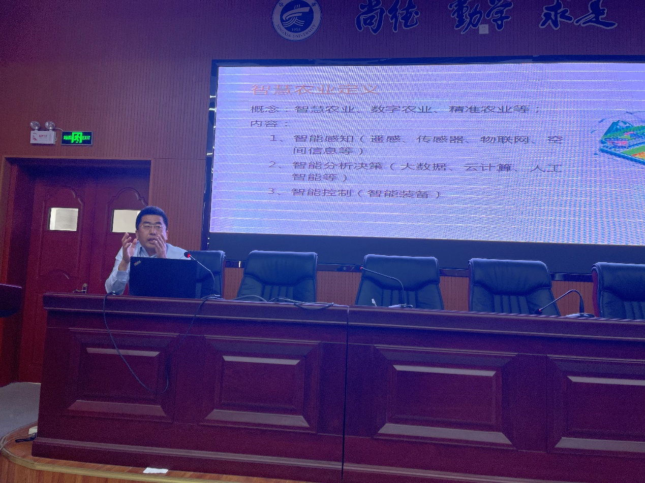 虎峰总经理做了题为《数字工具在玉米种植中的应用》的学术讲座,阐述了智慧农业的定义、现状以及发展趋势,分析了智慧农业的农事决策智能化、农业生产精准化、农场经营管理无人化、种植(养殖)生态化、农产品营销网络化等特征。着重介绍了以现代信息技术、无人机技术为基础,以农业大数据和作物模型为核心,以现代耕作技术、精准灌溉技术及智能农业机械为手段,与当前农业农村生产、经营模式相匹配的智慧农业体系。