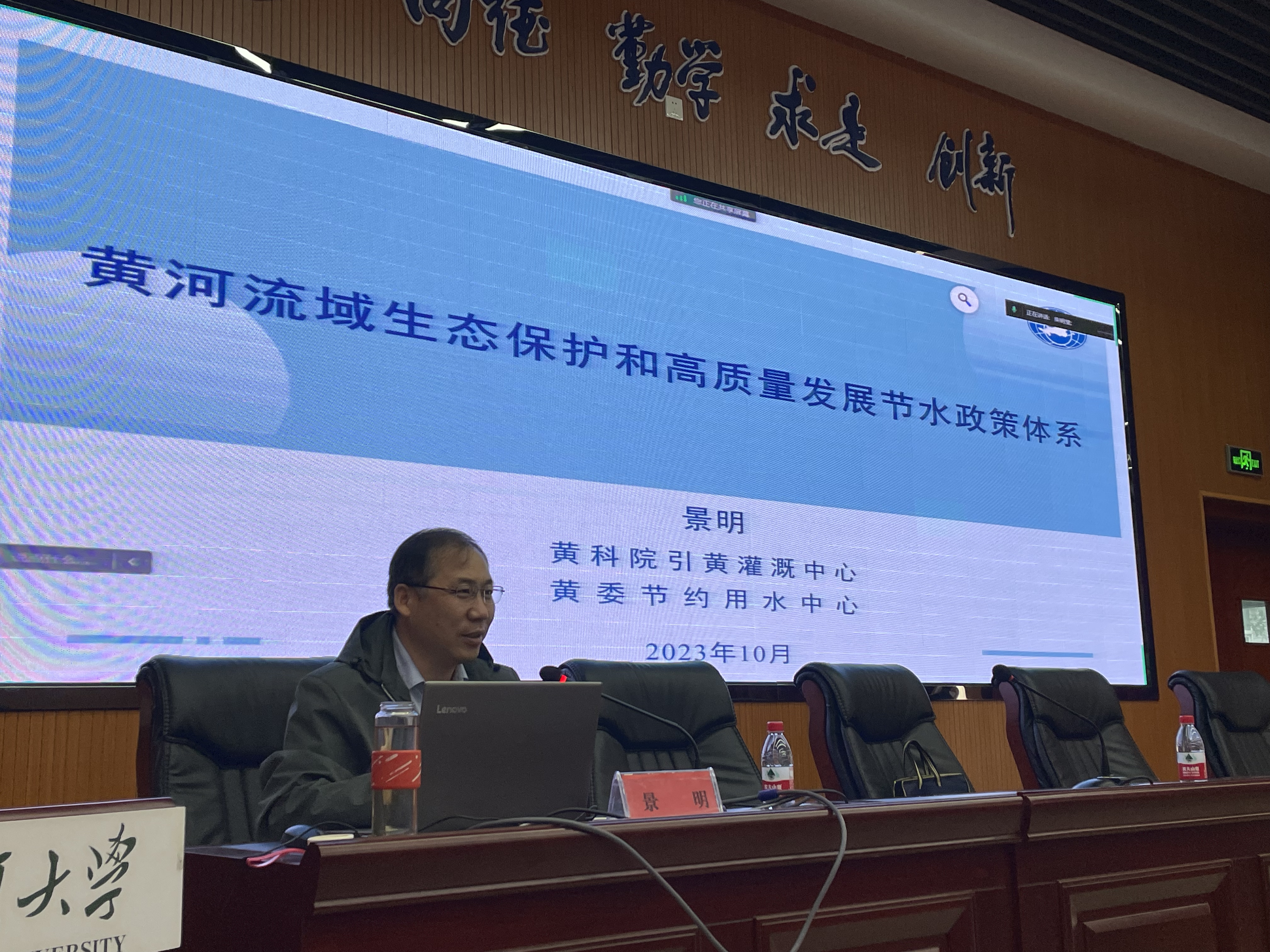 景明教高从黄河流域概况、水安全保障规划、黄河保护法解读三大方面对黄河流域水资源开发利用现状、治理管理原则,水安全保障规划的总体内容、黄河保护法立法过程及核心条款进行了详细阐述,最后对水资源节约集约利用中节水法律框架、法条及制体系进行了解读与普及。