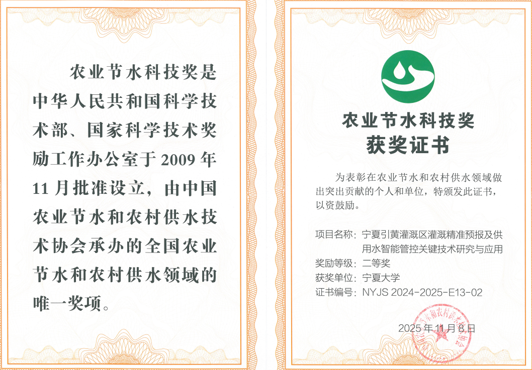 牵头人,徐利岗教授、丁一民副教授为主要技术骨干参与完成的“宁夏引黄灌区灌溉精准预报及供用水智能调控关键技术设备研究与应用”项目,荣获二等奖。该成果充分体现了每日黑料