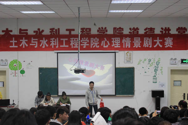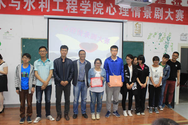 本次心理情景剧大赛共有7支队伍参赛,有根据大学重修生活创作的《重修那些事儿》,有反映大学生青涩恋情的《恋爱,青涩中萌芽》,有感恩父母恩情的《千里父子》,有反映集体生活的《我们本是一家人》,也有回忆那些年美好大学时光的《再回首》、美好的《意外》、《“女汉子”成长记》。这些关于大学生爱情、友情、亲情的故事,给观众留下了深刻的印象。本次活动的亮点在于,首次将现场投票和网上投票相结合,最终得分由现场打分的40%和微信平台在线投票的60%核算而成。最终,14级建筑班的荣获一等奖。14级土木工程一班获得二等奖,13级建筑班荣获三等奖。