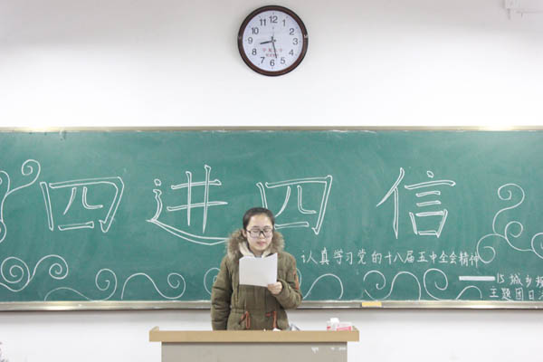 2015级城乡规划班在工科楼702教室举行“增进‘四进四信’ 认真学习党的十八届五中全会精神”的主题团日活动。2015级城乡规划班全体成员参加了本次活动。
