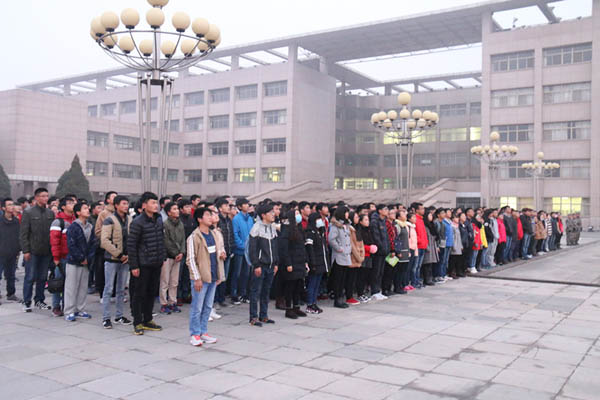 全体学生在A区主楼前进行了庄严的升国旗仪式。