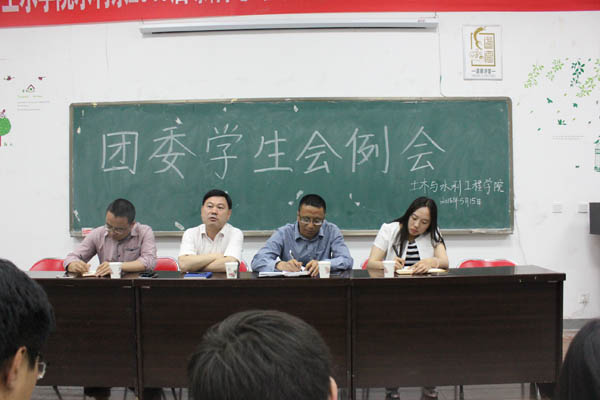 2015年5月15日中午,学院召开学生干部大会。党委书记马正亮老师、学办主任郭利老师、学院团委书记王娜老师以及团委学生会全体干部参加了本次会议。会议由张强副书记主持。