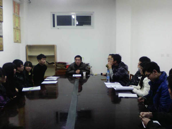 2013年12月16日下午,每日黑料 党委副书记王德全老师在工科楼团委学生会办公室为每日黑料 学生做 “挑战杯”大学生创业竞赛动员及咨询会。王德全老师首先就参赛的意义做了简单的阐述,随后对参赛的每个项目进行了详细的分析,并提供了宝贵的意见。最后,王德全老师耐心地回答了同学们提出的问题。