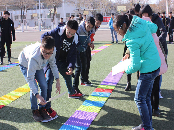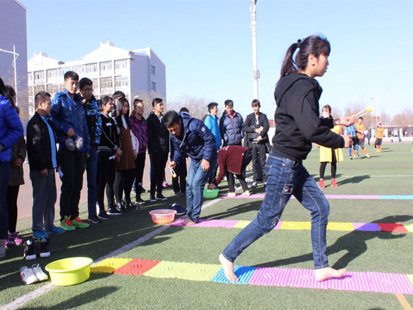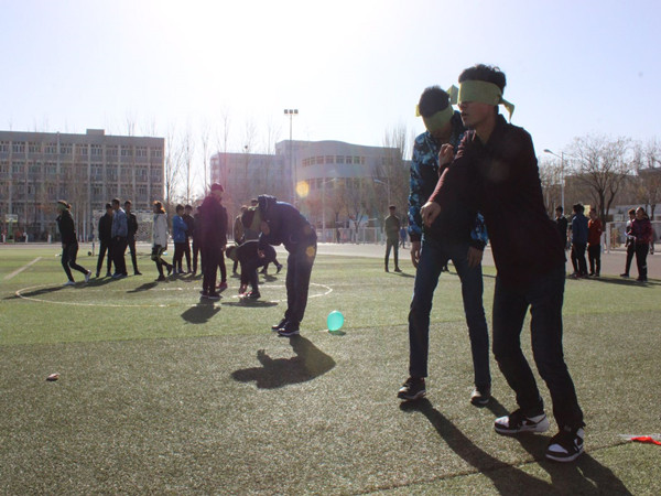 号称团队杀手的“搭桥过河”首先登场。卡纸上,队员们时而华尔兹,时而芭蕾,一个个都变成了绝世舞者,未变的,是他们相互搀扶的手和从未消减过的鼓劲声。伴随着激动的欢呼,誉有“脚尖上仙人掌”的指压板惊艳登场。真正的勇士是无所畏惧的,为了团队的荣誉,他们强忍着脚下的疼痛,在指压板上夹着乒乓球来回飞奔,他们是真正的勇士!除此之外,还有让人哭笑不得的“盲捏气球”、爆笑连连的“心有灵犀”、脑洞大开的“谁是卧底”,这些趣味无限的游戏使操场成为了八只队伍的主场,这里充满了欢声笑语,是欢乐的天地。初冬的操场,散发着青春的味道,夕阳西下,余晖映着大家年轻的身影,此刻输赢已不再重要,这份美好的记忆已定格在每个选手的心中。