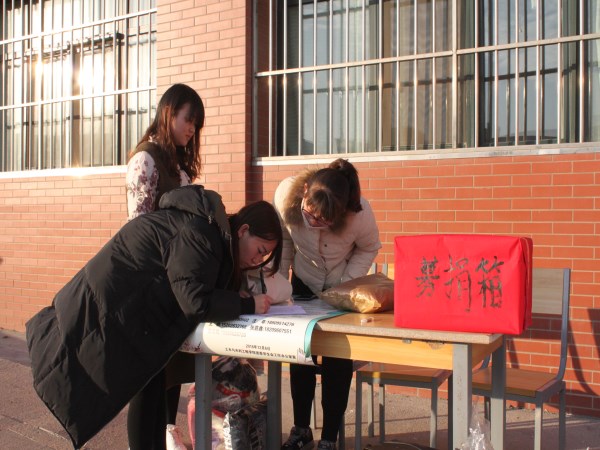 正如《爱的奉献》歌词中写到的,只要人人都献出一份爱,世界将变成美好的人间。因为同学们的爱心,天空变得不再是那么灰暗,寒风变得不再有那么刺骨,阳光变得温暖了许多。在募捐的过程中,有的学长学姐将棉衣和鞋子捐了出去,还有的捐出了漂亮封皮的笔记本、小台灯和随身小玩具……他们知道,或许自己眼中可有可无的物品在远方的另一个地方,将变成孩子们最惊喜的礼物。当进行实名登记时,他们含笑摇头,一位学长打趣道:“我们要贯彻落实做好事不留名的雷锋精神!”在心与心交织的那一刻,冬日的天空出现了一抹亮丽的风景。