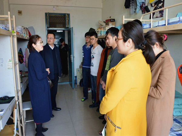 党委书记高继明、党委副书记柳松洁携学院全体辅导员老师对学院的宿舍卫生情况进行了走访。