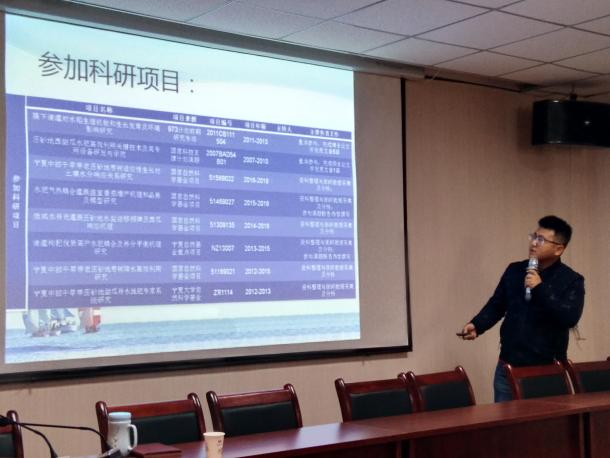 活动前段,由青年博士何进宇老师为同学们介绍了他的博士论文《膜下滴灌水稻水-肥-产量规律及优化灌溉制度研究》,膜下滴灌水稻作为一项革命性的水稻种植技术突破,其需水需肥规律及水肥优化组合等方面的研究引起了老师同学们的兴趣与探讨,尤其是在交流中李王成老师提到基于水稻性状由基因和环境共同作用,在控制灌溉的物理条件下,是否可以引导水稻的性状朝优质方向发展的思考,为大家提供了更新更深的思维方向,也建议何进宇老师可以抓住水肥耦合对水稻品质影响机理进行更加深入的研究。
