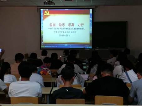 随后,何建国校长讲话中,以《四有好老师为标准打造高素质队伍夯实和打牢学校双一流建设根基》为主题进行授课,强调争做'四有'好老师的必要性,切实担起学生健康成长指导者和引路人责任的重要性。而赵利宁副书记则结合马克思饱尝煎熬却伟大的一生的例子,对宁大学子提出了要乘新时代春风,为全面建成小康社会、全面建设社会主义现代化强国而努力奋斗的厚望。