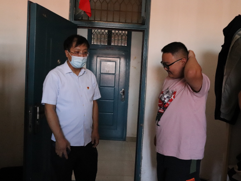 在宿舍楼大厅设立报到处,安排学生进行值班。书记和院长询问了报到处值班人员的具体工作情况,了解学生返校时间。为了更好地了解同学们返校后的生活状态,院长与书记逐个宿舍进行观察慰问,询问学生们的返校方式与身体状况,到校后宿舍情况以及课业问题。