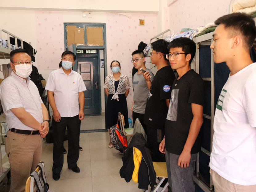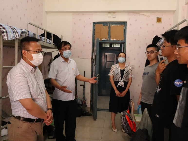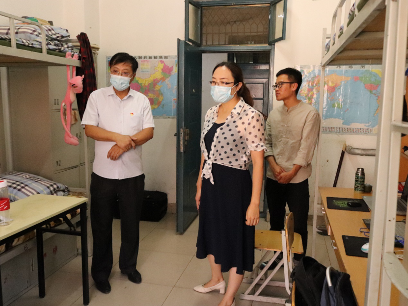 党委书记张晓天、院长毛明杰、学生工作办公室主任王娜于15号楼公寓看望返校学生。