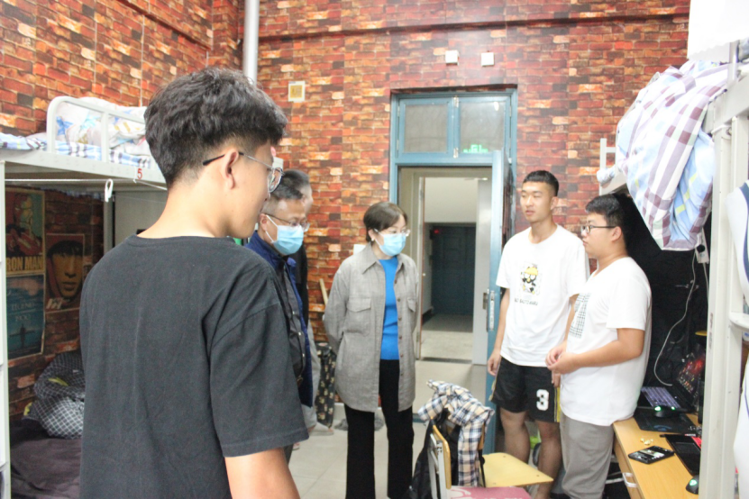 为更好了解2020级学生到校后的生活状态,院领导逐个宿舍观察慰问,询问学生返校情况,关切学生身体状况与宿舍卫生情况,关注学生入学报到的准备工作完成情况。