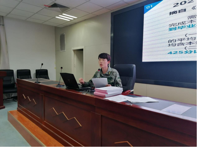 2021届毕业生学业就业动员大会在国防生之家顺利开展。会议由2017级年级主任蒋宇欢主持,学院党委副书记柳松洁、2021届全体毕业生参加了此次动员大会。