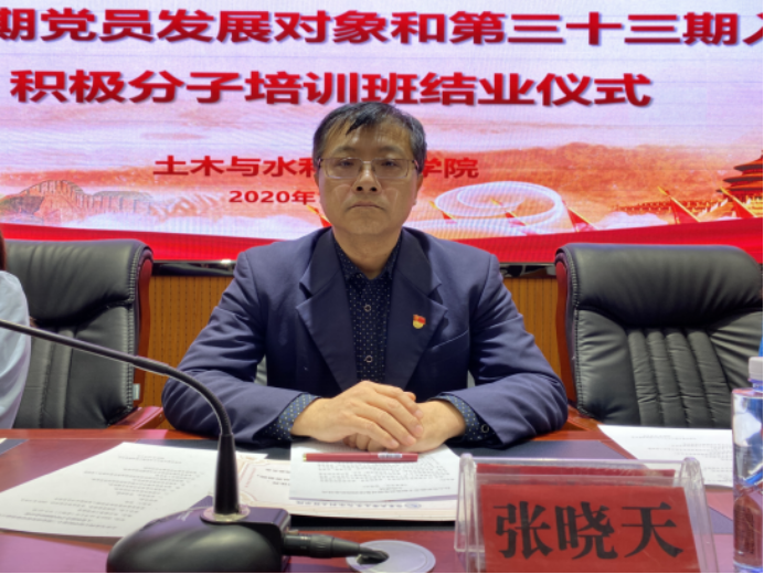 2020�12�2�12:30,土木与水利工程学院第十二期党员发展对象和第三十三期入党积极分子培训班结业仪式在知行楼三阶举行。会议由学生办公室何涛老师主持,学院党委书记张晓天老师、党委副书记柳松洁老师、各学生党支部书记�2020年秋季学期入党积极分子�2020年下半年党员发展对象全体学员参加了本次结业仪式�
