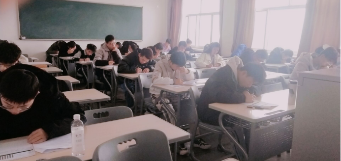 考试当天备考同学积极参与,本次考试完全模拟四六级英语考试的正规流程,所用试题符合四六级考纲的最新要求。考试开始前,监考人员提前到各考场调试听力设备,以确保播放听力环节万无一失。考试开始时,由各个考场监考人员发放试卷与答题卡,严格按照标准时间播放听力,收发答题卡,并维持考场秩序,营造出一个紧张的模拟环境,考生们也认真细心地作答每一道题目。考试结束后,监考人员收取答题卡,考生有序离开各自考场。