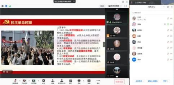4�9日下午,党史学习教育讨论党小组在腾讯会议召开线上会议,会议主题为党史学习教育。第一部分:根据上次会议组员选择的阶段进行内容讲解。买瑞同学讲述了中国共产党历史的民主革命阶段的主要内容,并且从理论发展角度来描述党史发展的脉络,和其他成员进行讨论和学习。通过学习必将增强我们对党的感情认同、理论认同、政治认同。对继承和发扬光荣革命传统、党的优良作风,对提高自己的认识能力和处理实际问题的能力都是十分必要的和有益的。第二部分:同学们各自学习了《论中国共产党历史》这本书,根据书中的各个主题章节,进行自主学习,需要时可选择书籍批注和读书笔记学习�