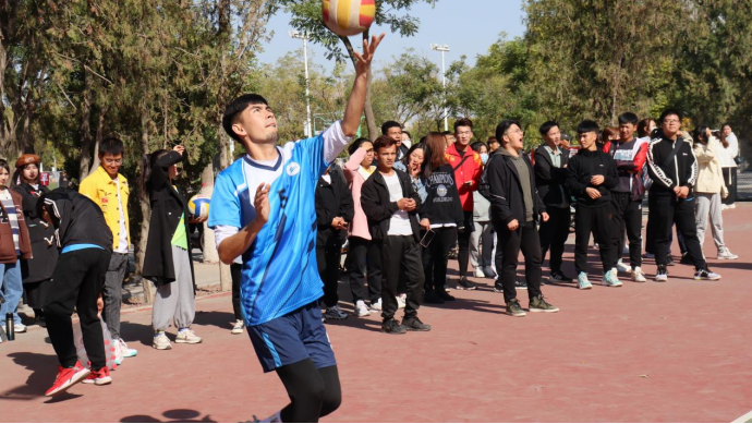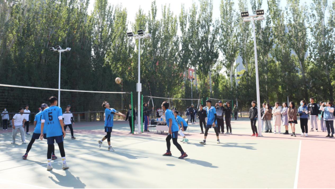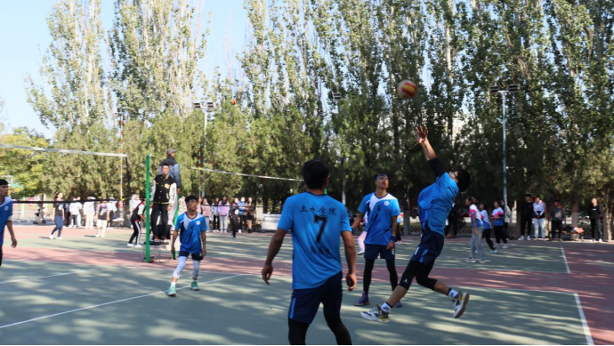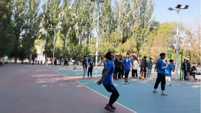 “土水加油”的助威声铿锵有力,此起彼伏,男排队员轻松夺下第一局的胜利。
