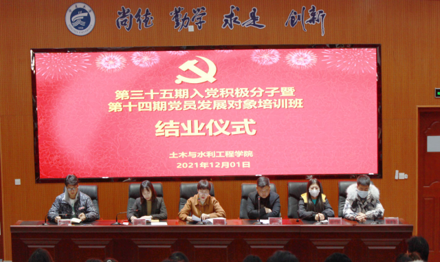 结业仪式上,水利本科党支部书记梁冀宁宣读了本期培训班结业人员名单,土木本科党支部书记何涛宣读了优秀学员名单并颁发了荣誉证书。