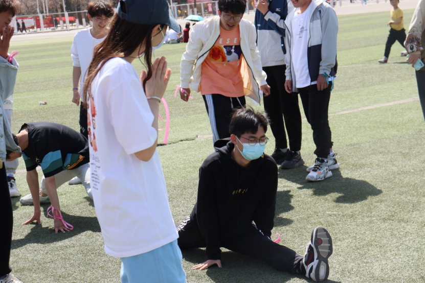 此次素质拓展分早上和下午进行,活动在“缘分一道桥”中开展分组,各小组熟悉小组成员后,进行了谁是柔韧王、真假难辨、开火车、千千结等游戏,活动有挑战也有温馨。