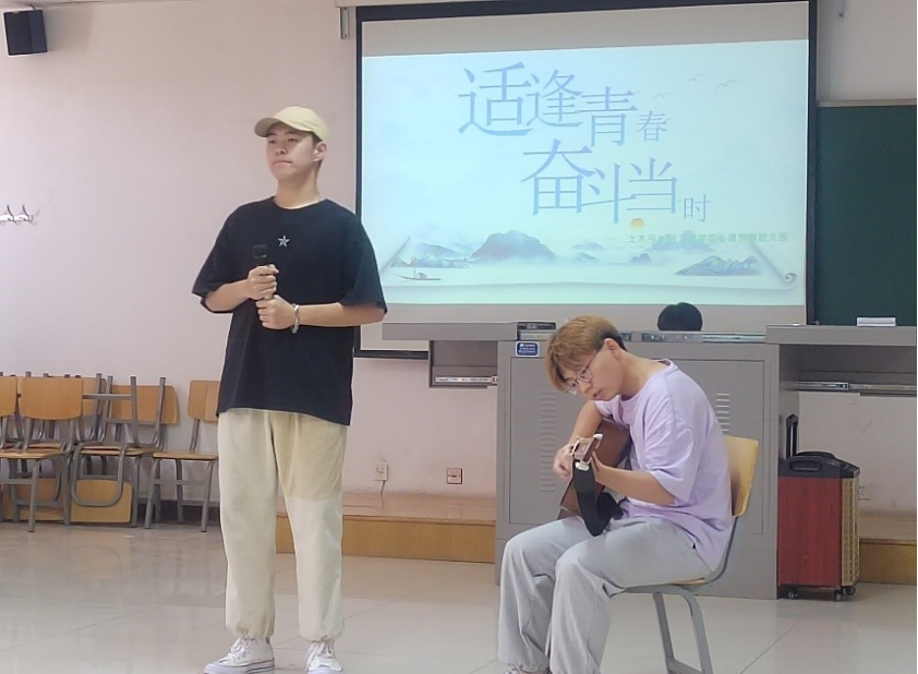 参赛的节目每个都经过参赛人员的精心排练,上场后全身心的投入了进去,丝毫没有凝滞感。他们的表演的内容围绕着大学生心理活动和防诈骗宣传展开,既丰富多彩又真情实感。主持人首先介绍了到场嘉宾,为参赛选手宣读比赛规则。节目首先由苏域及牛渭伟学长倾情演唱的《老男孩》开场,激起大家的情感共鸣,渲染了活动氛围,成功点燃了大家的热情。