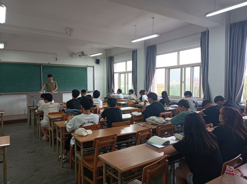 在辅导一开始,辅导小老师为同学们回顾所负责章节的知识点,强调了重要的公式,对各种题型进行了分类总结,加强了同学们对定理及公式的掌握以及应用。在辅导过程中,学长学姐们将自己准备的内容逐一讲解,将例题或者课后习题过程工整地写在黑板上展现给同学们,让同学们更直观、更清晰地理解每一道解题步骤。同学们仔细认真听讲、记笔记,并积极回答问题保持活跃的课堂气氛,以饱满热情的态度与小老师互动讨论,营造了浓厚的学习氛围。