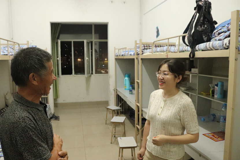 20点30分学院党委副书记柳松洁和19级代理年级主任王娜来到15号楼男生公寓走访新生住宿情况,对19级新生与学长住的混合宿舍进行实地了解。从二楼开始,老师们和小班,班助一起来到男生新生宿舍,柳松洁和王娜对新生是否适应宿舍生活,宿舍卫生风貌如何细心的提问;有家长恰好在宿舍的老师们亲切的嘱咐,让其放心。除此之外,因为是与学长混住,老师们还对提前到校的学长嘱咐是一个专业的要对学弟们传业授道解惑,不是一个专业的也要对学弟在生活上多加照顾,对新生们嘱咐要与学长们和睦相处,不论是宿舍卫生方面还是学习精神方面都要提升,一起进步。