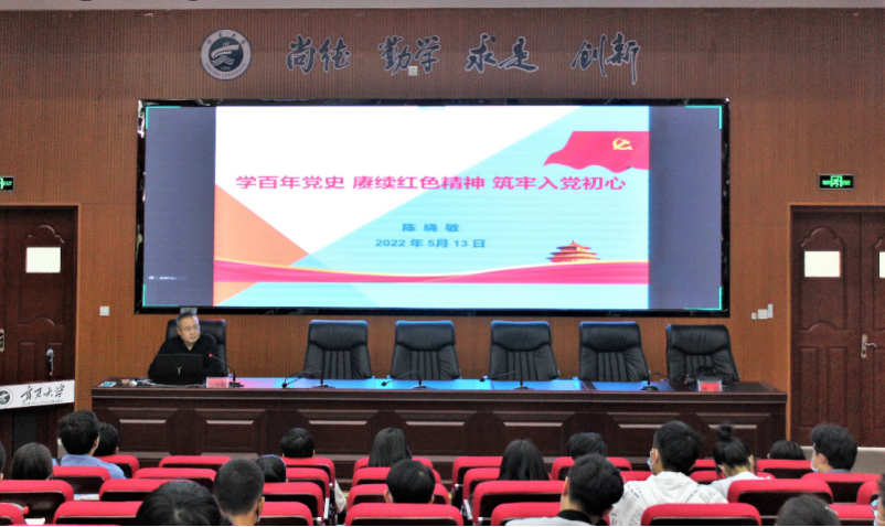 党委书记陈晓敏在知行楼三阶开展“学百年党史 赓续红色精神 铸牢入党初心”专题党课辅导,2022年春季学期积极分子和2022年上半年党员发展对象全体学员参加,辅导由何涛老师主持。