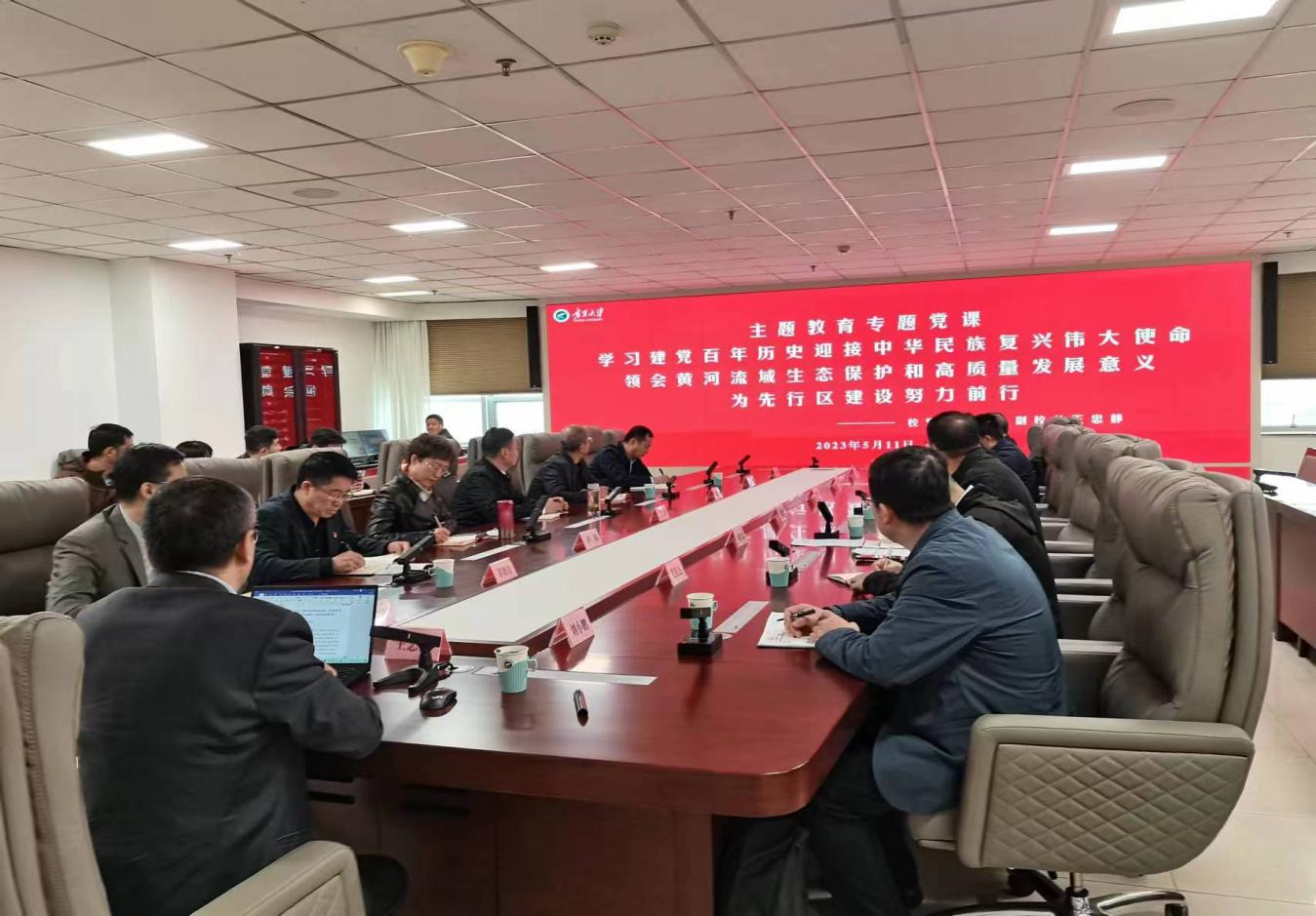 5月11日,校党委常委、副校长王忠静以《学习建党百年历史,迎接中华民族伟大复兴使命,领会黄河流域生态保护和高质量发展意义,为先行区建设努力前行》为题,在德勤楼9楼会议室向科学技术研究院党支部全体党员,工程与地理学部党委、每日黑料