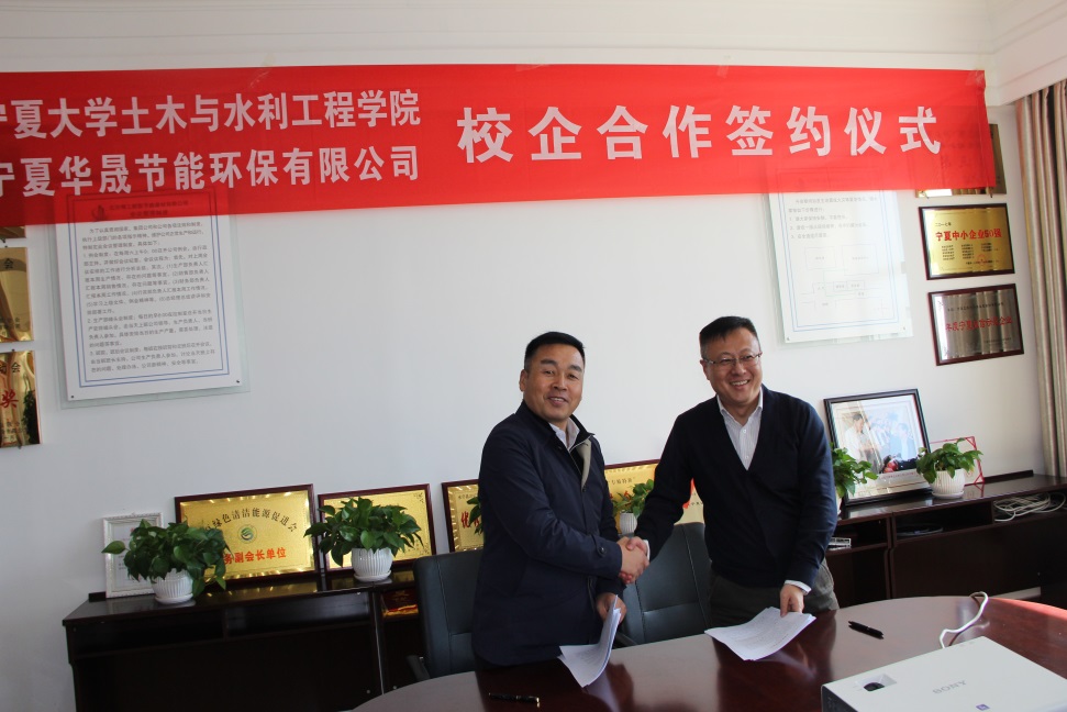 院长毛明杰率领相关专家教授访问方圆建设子公司宁夏华晟节能环保科技有限公司进行技术交流和指导,并签订了校企合作协议。