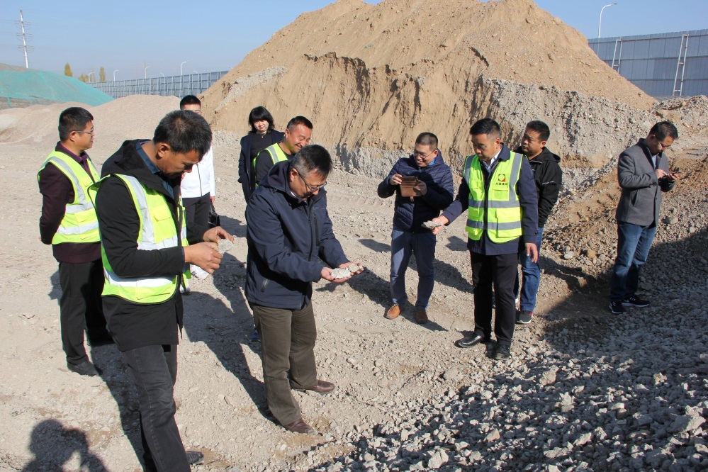 毛院长和李教授及学院相关教授先后考察了华晟节能公司所属的生产厂区、银川市建筑垃圾临时归纳点、宁东水稳站和宁东基地在建项目施工现场,并进行了技术交流和指导。