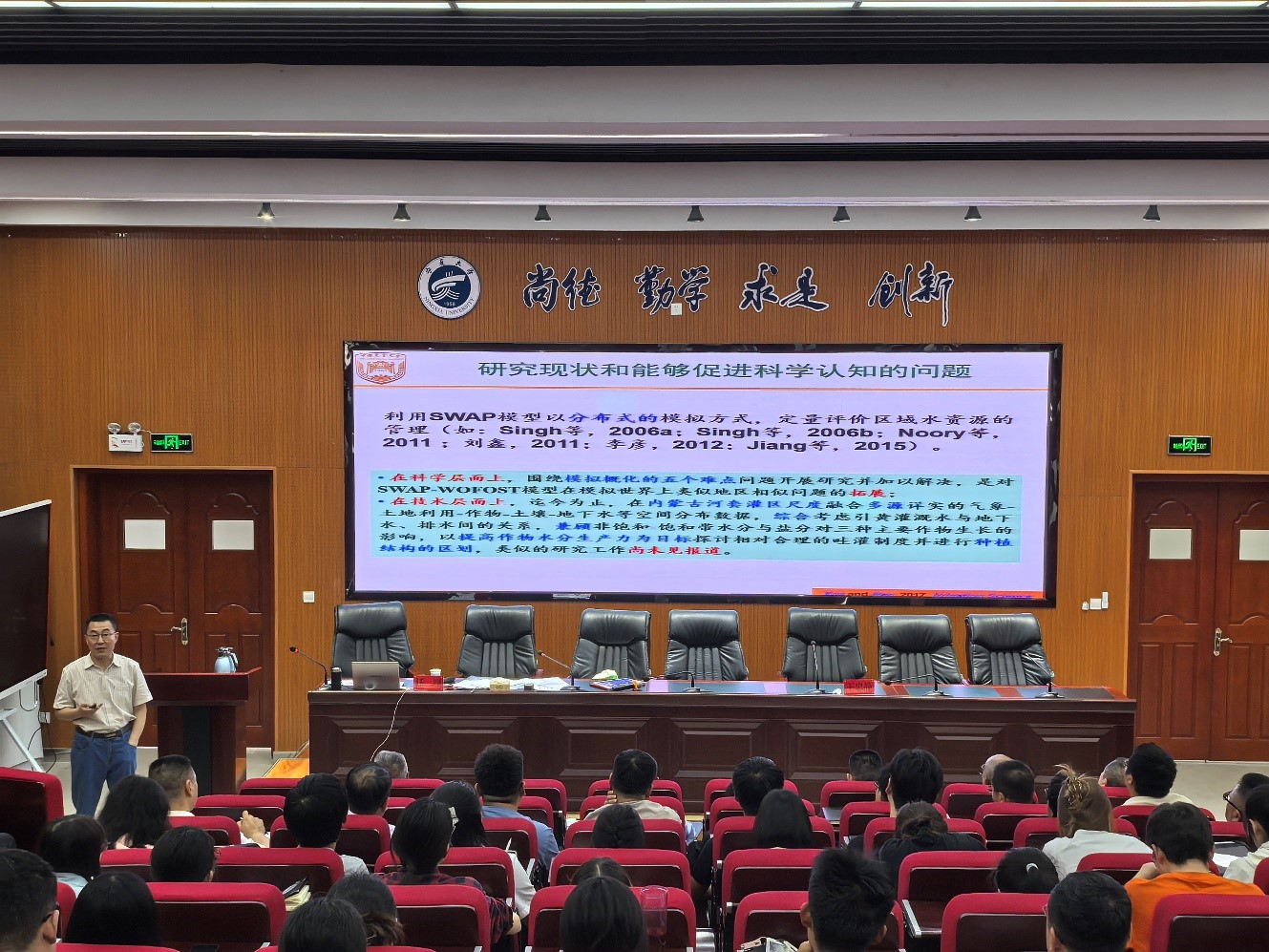 师生做了题为“黄河流域内蒙古河套灌区主要作物水分生产力模拟及种植结构区划”的学术讲座,王忠静副校长主持了这场历时三个半小时的学术讲座,党总支书记尹娟、院长毛明杰、副院长刘海峰、李王成,校发展规划处副处长徐利岗及学院百余名师生参加。