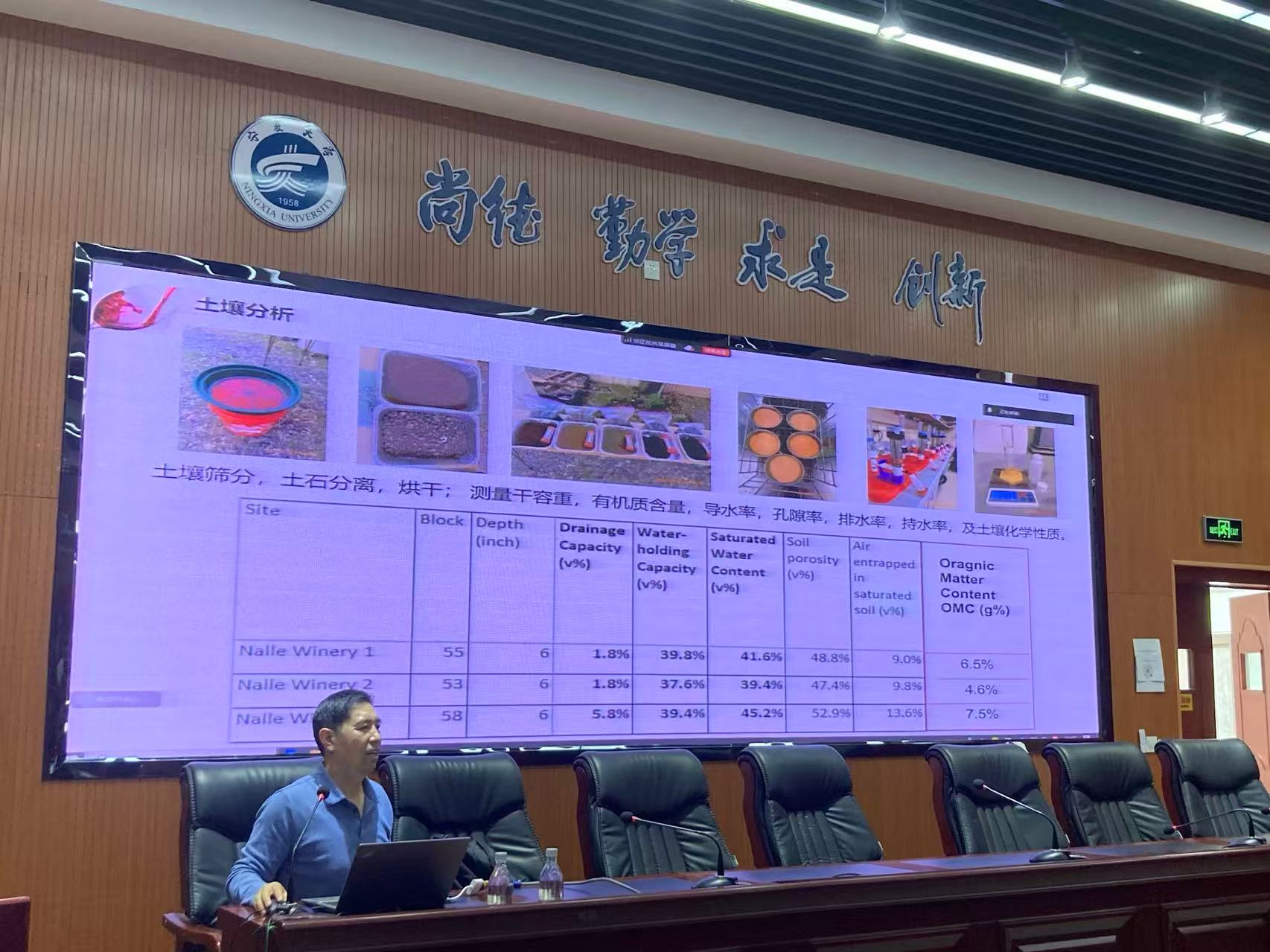 师生做了题为“土壤及水与葡萄酒质量的关系”学术报告,学院师生100余人参加。报告会由水利系李超超教授主持。